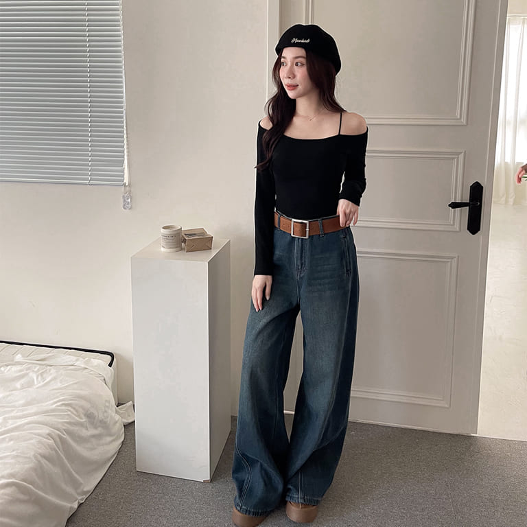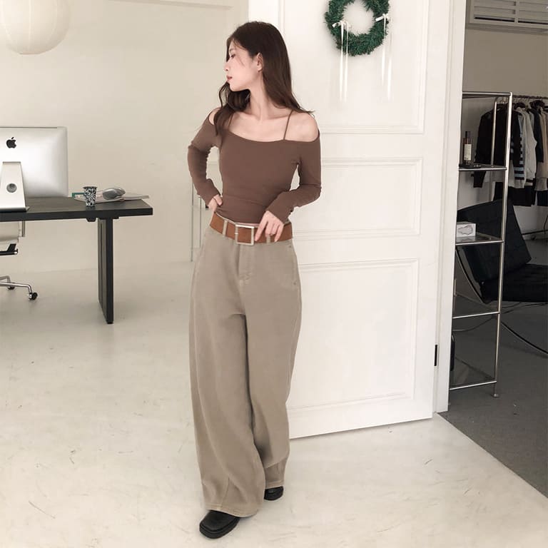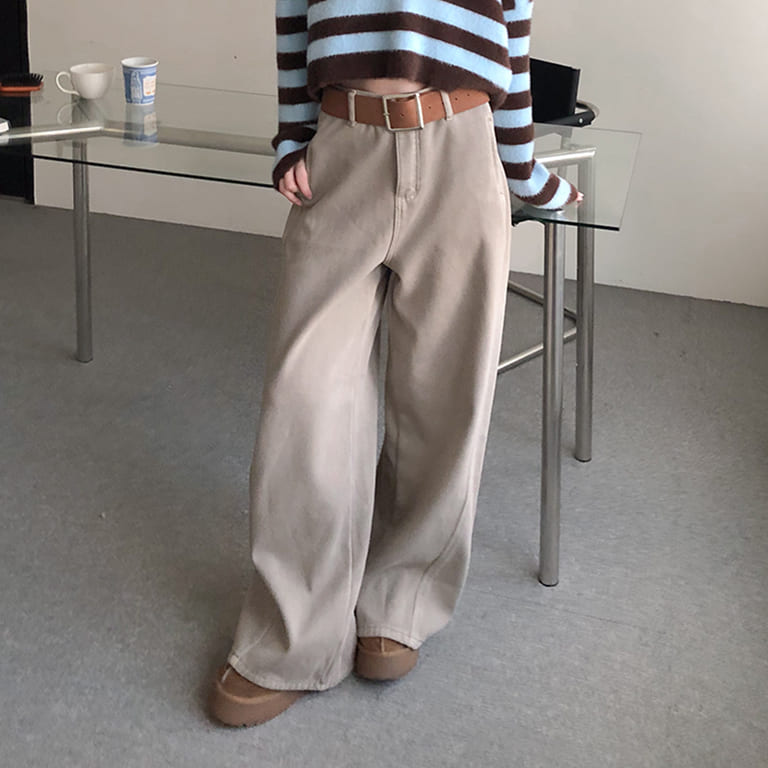褲型一穿就知道很可以🤍內刷毛設計保暖又舒服。挺版闊腿剪裁,拉長比例超有感。附腰帶細節完整,日常百搭不出錯。