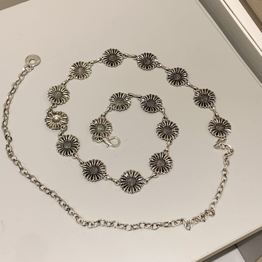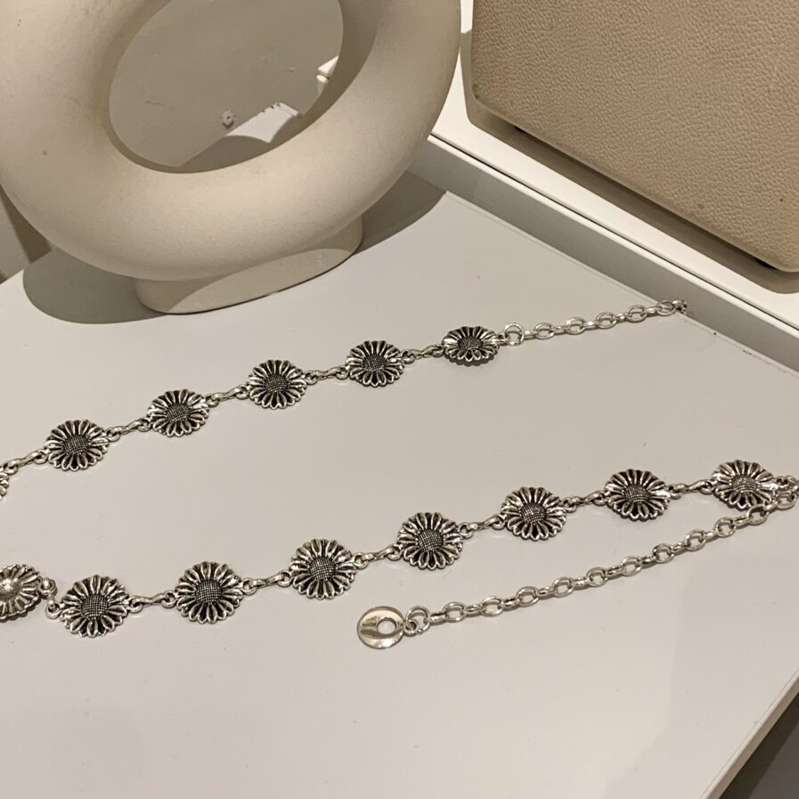 小雛菊點綴,甜度剛剛好🌼銀鎖片搭配可愛細節,日常也能輕鬆駕馭。不管是素T、針織或洋裝,加上它就更有造型感。走到哪都會被問的一條腰鍊。