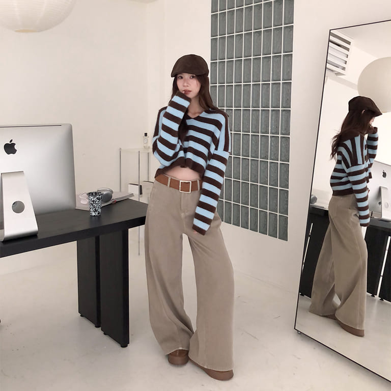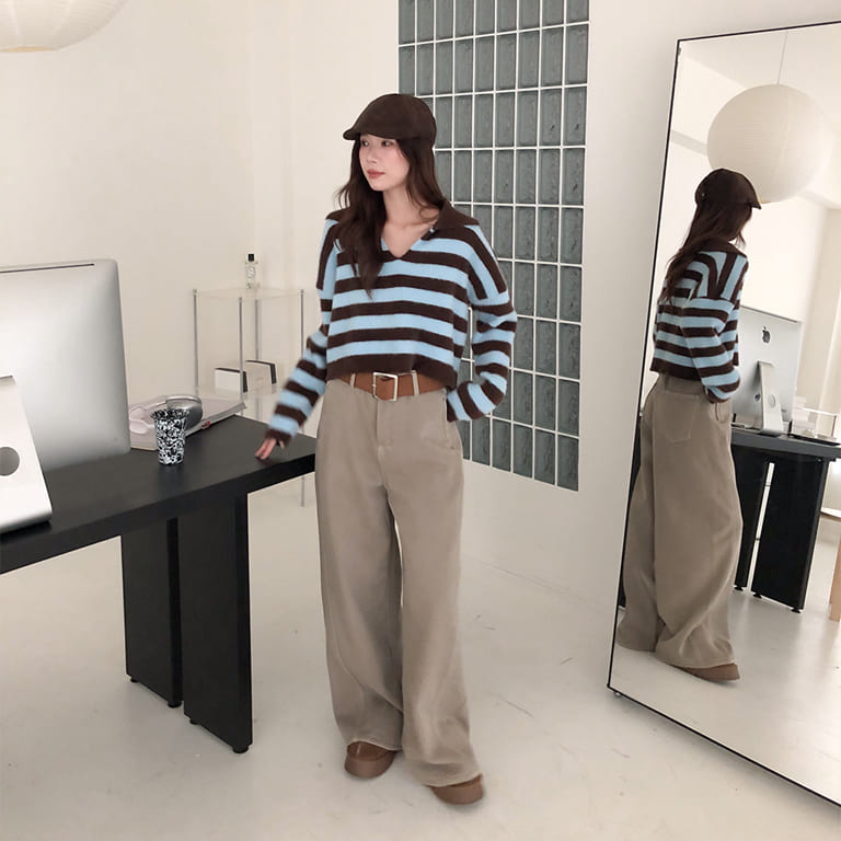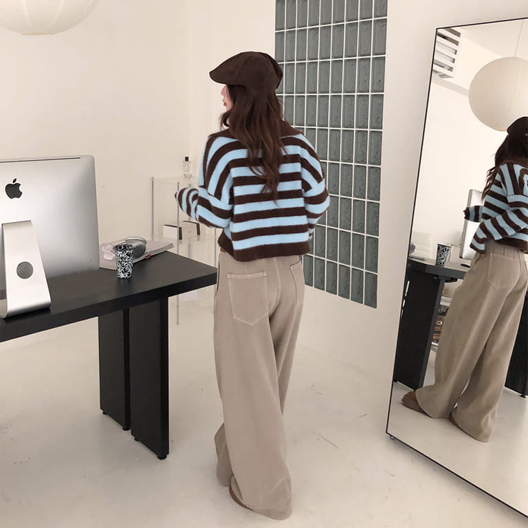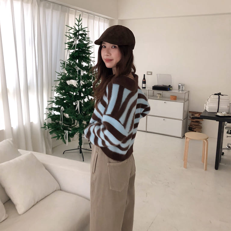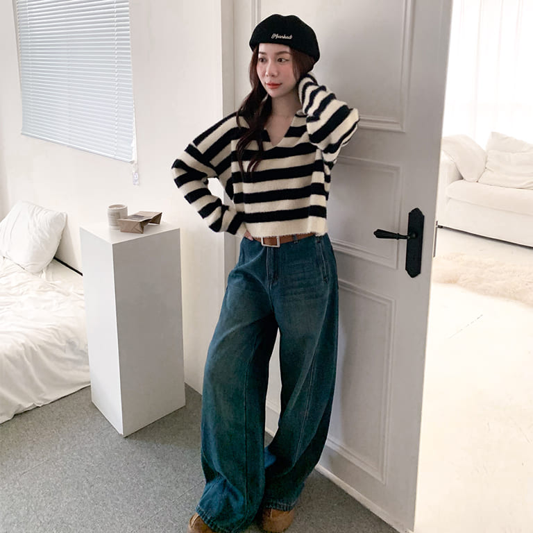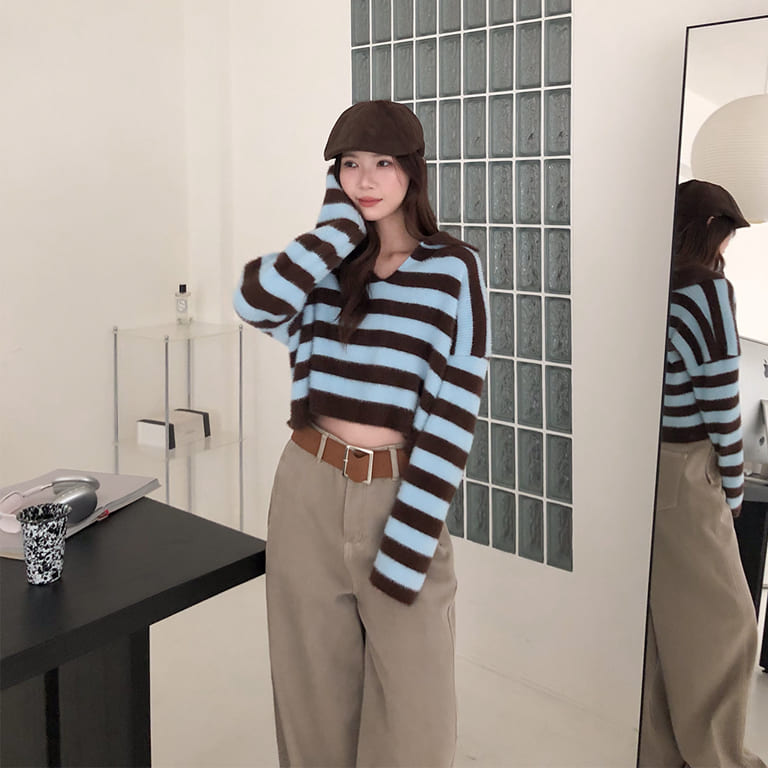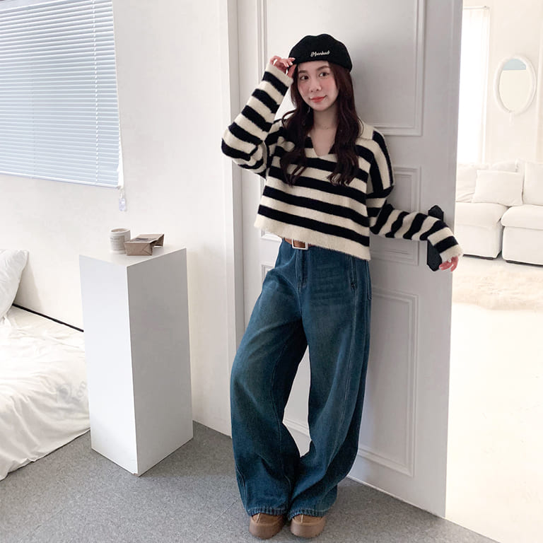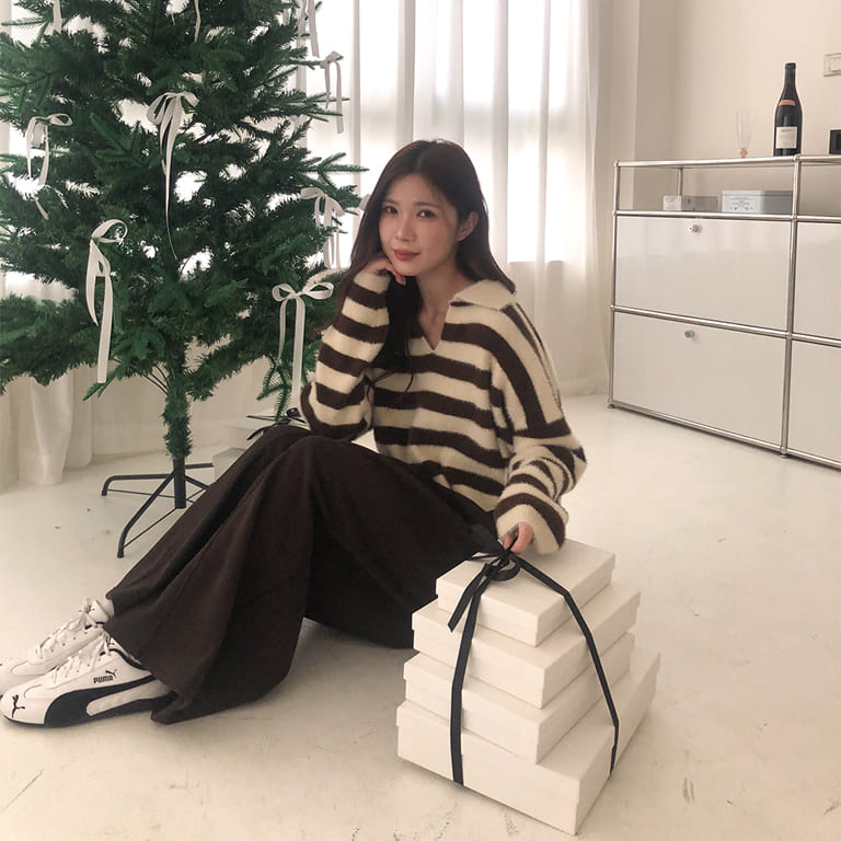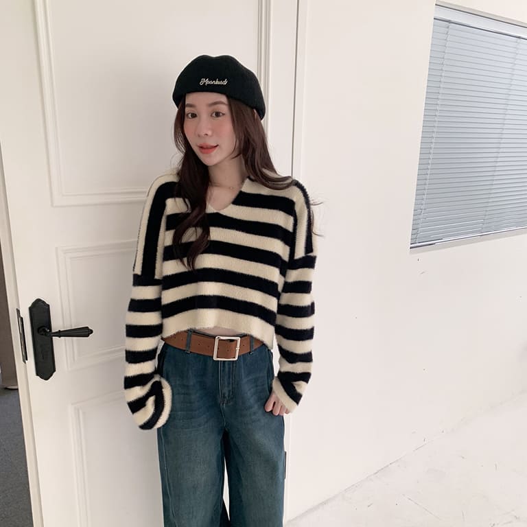 韓妞都在穿的那種條紋款🇰🇷水貂毛材質親膚又有暖度。POLO領設計讓整體更有層次感。簡單搭一件下身,就很有穿搭完成度。